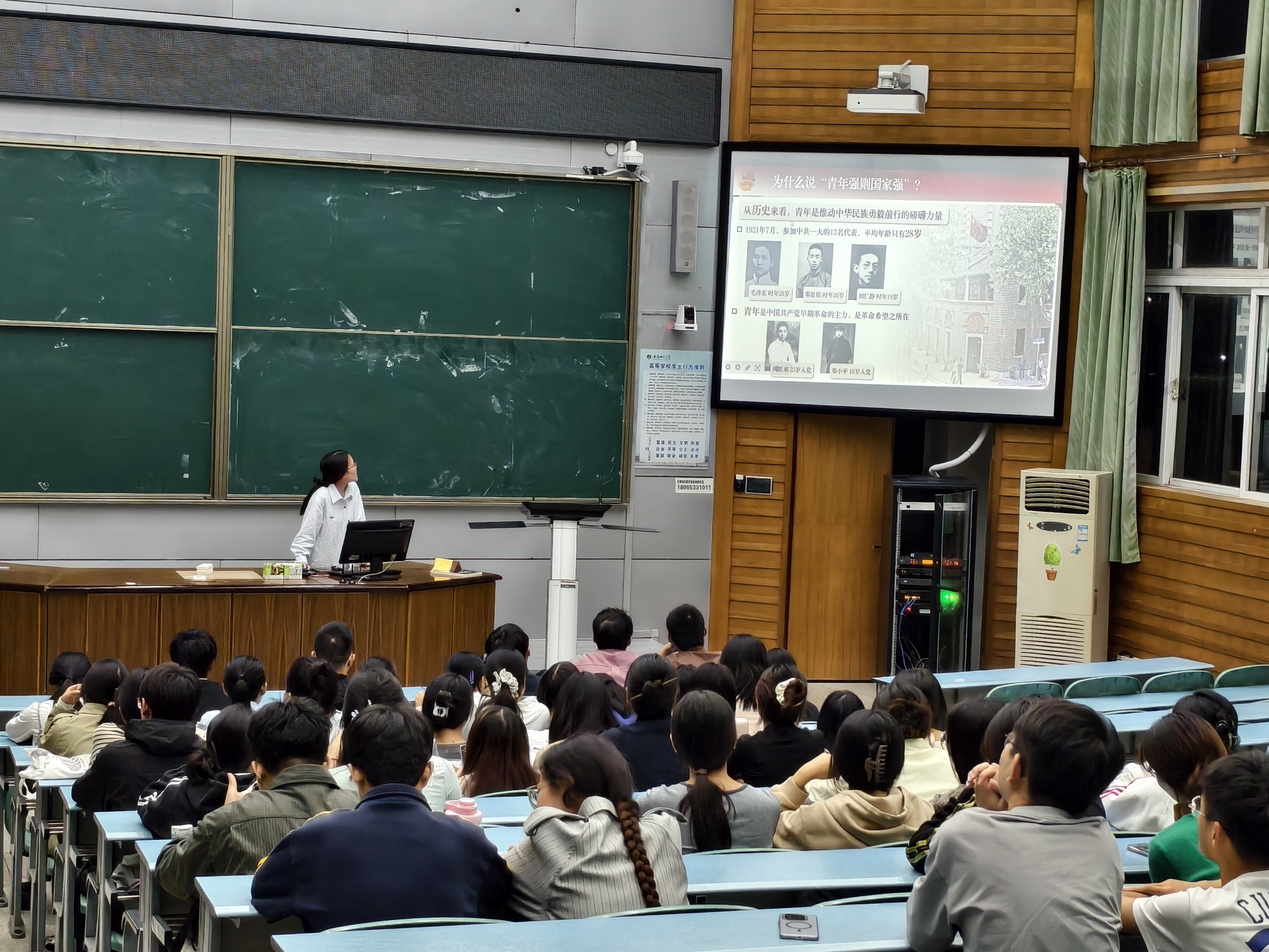 回首百年:青春力量谱写复兴华章。围绕“为什么说‘青年强则国家强’”这一主题,活动带领同学们进行了一场跨越百年的青春对话。先是一起观看了“中国青年是什么样”的视频,接着从中共一大代表平均年龄仅28岁的开天辟地,到毛泽东、周恩来、邓小平等革命先辈在青年时代便投身革命的壮举,大家深刻认识到,青年始终是党和国家事业发展的生力军和希望所在。