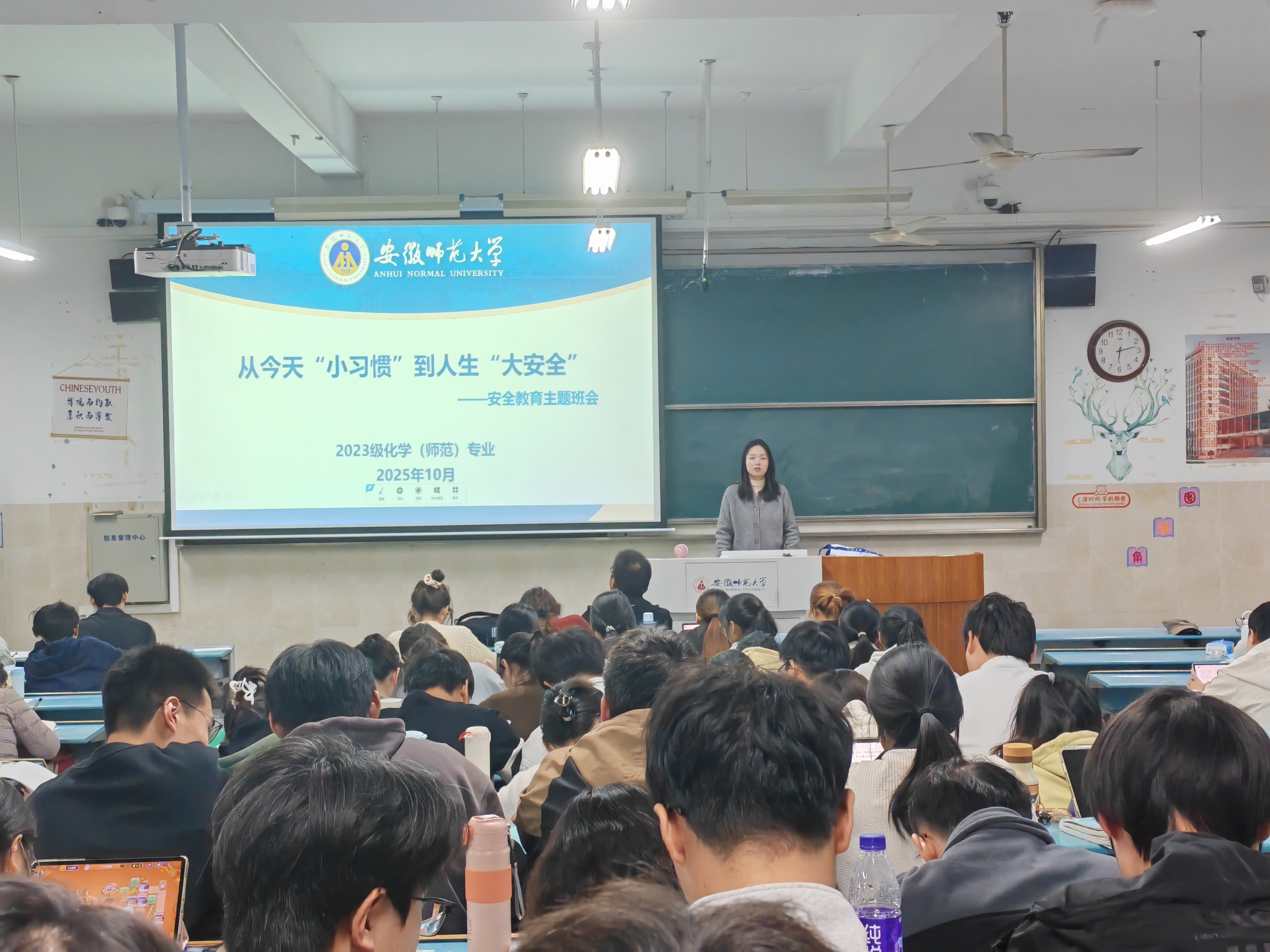 本网讯(化材学院 段雨含)为强化学生安全意识,培养良好安全习惯,2025年10月,2023级化学(师范)专业开展“从今天‘小习惯’到人生‘大安全’”安全教育主题班会,围绕宿舍安全、交通安全、网络安全等多方面展开深入讲解,为学生筑牢校园安全防线。