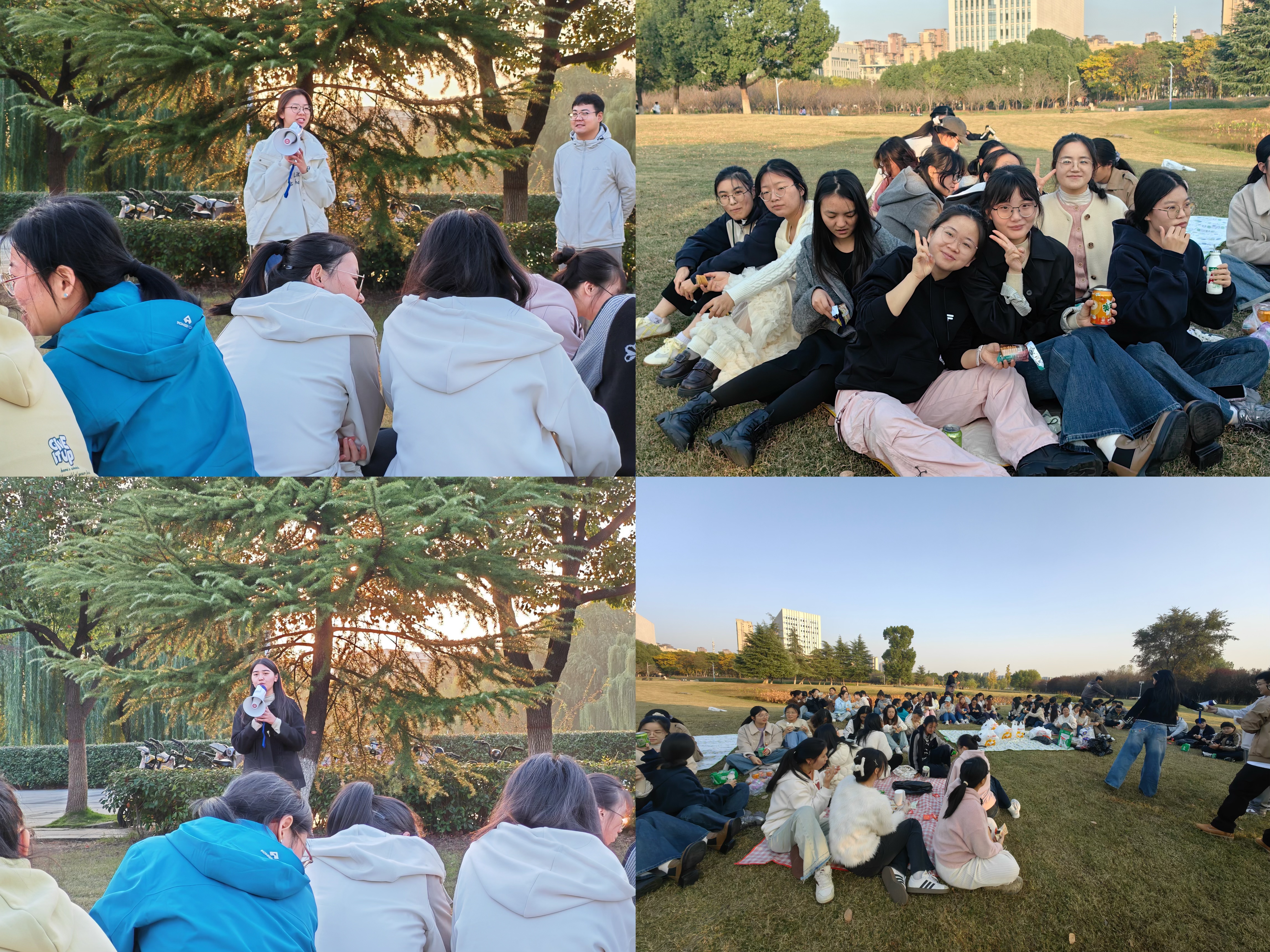 秋日的阳光洒满校园,11月13日下午,2023级化学师范专业5班、6班同学齐聚在津南大草坪,班主任孔婷婷老师及其课题组成员以“分享成长喜悦,奔赴美好未来”为主题,和同学们一起开展了一场充满温情的户外班会。