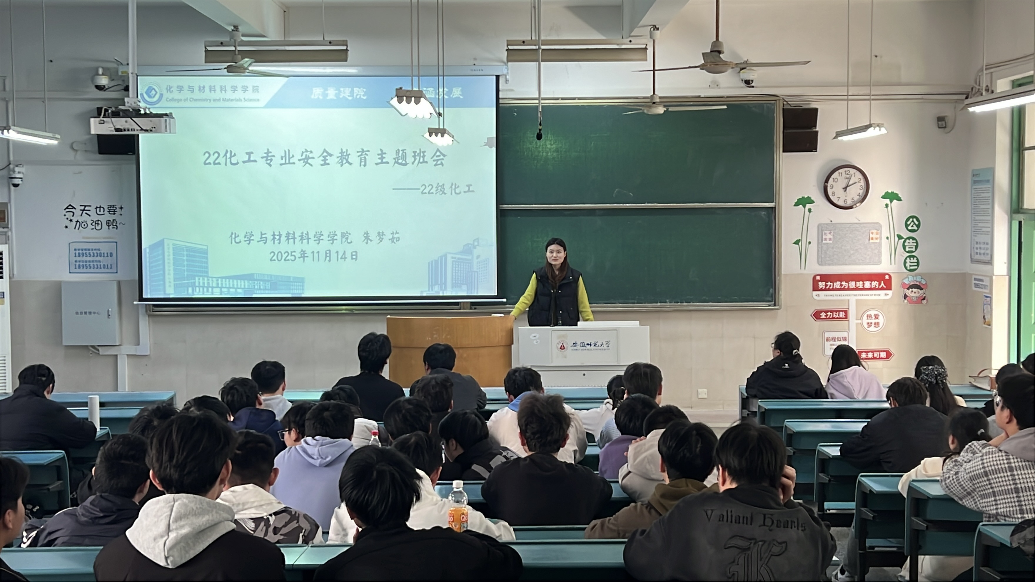本网讯(化材学院 汤雷)为切实保障学生安全,增强学生安全防范意识,2025年11月14日化学与材料科学学院化学工程与工艺专业在2030201由辅导员朱老师组织开展安全教育主题班会,重点围绕交通安全、宿舍安全、水电安全、防盗防骗、人身财产安全等方面展开。