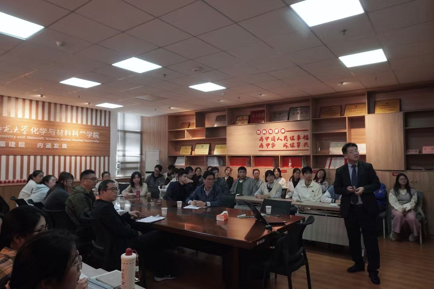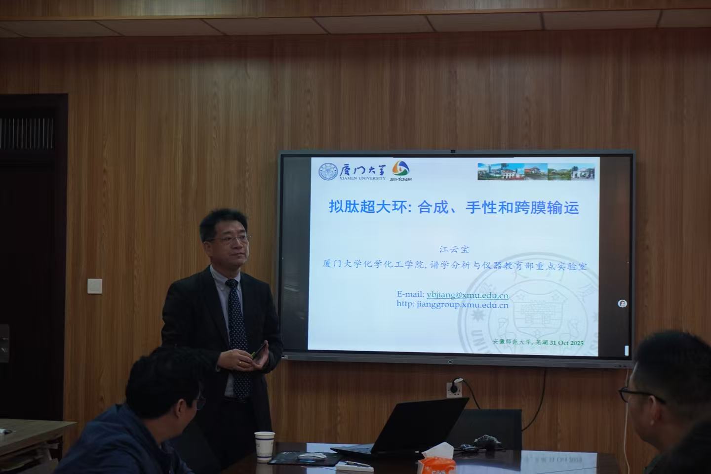2025年10月31日,厦门大学江云宝教授应邀来我校讲学。报告会在花津校区礼勤楼707报告厅举行,由高峰副校长主持,化材学院部分师生参加了此次报告会。
