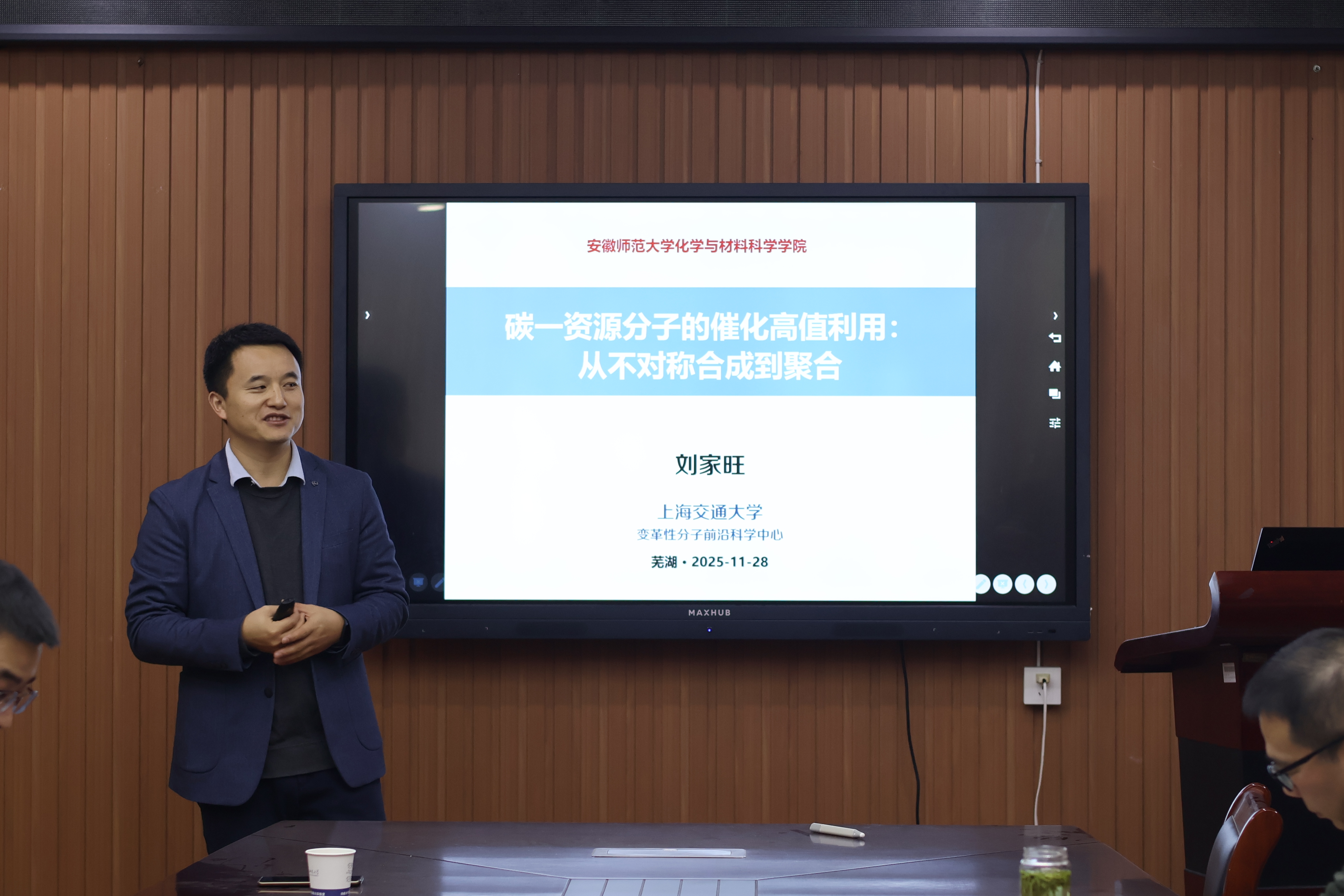 2025年11月28日,上海交通大学刘家旺副教授应邀来我校讲学。报告会在花津校区礼勤楼702会议室举行,由化材学院王辉教授主持,化材学院部分师生参加了此次报告会。