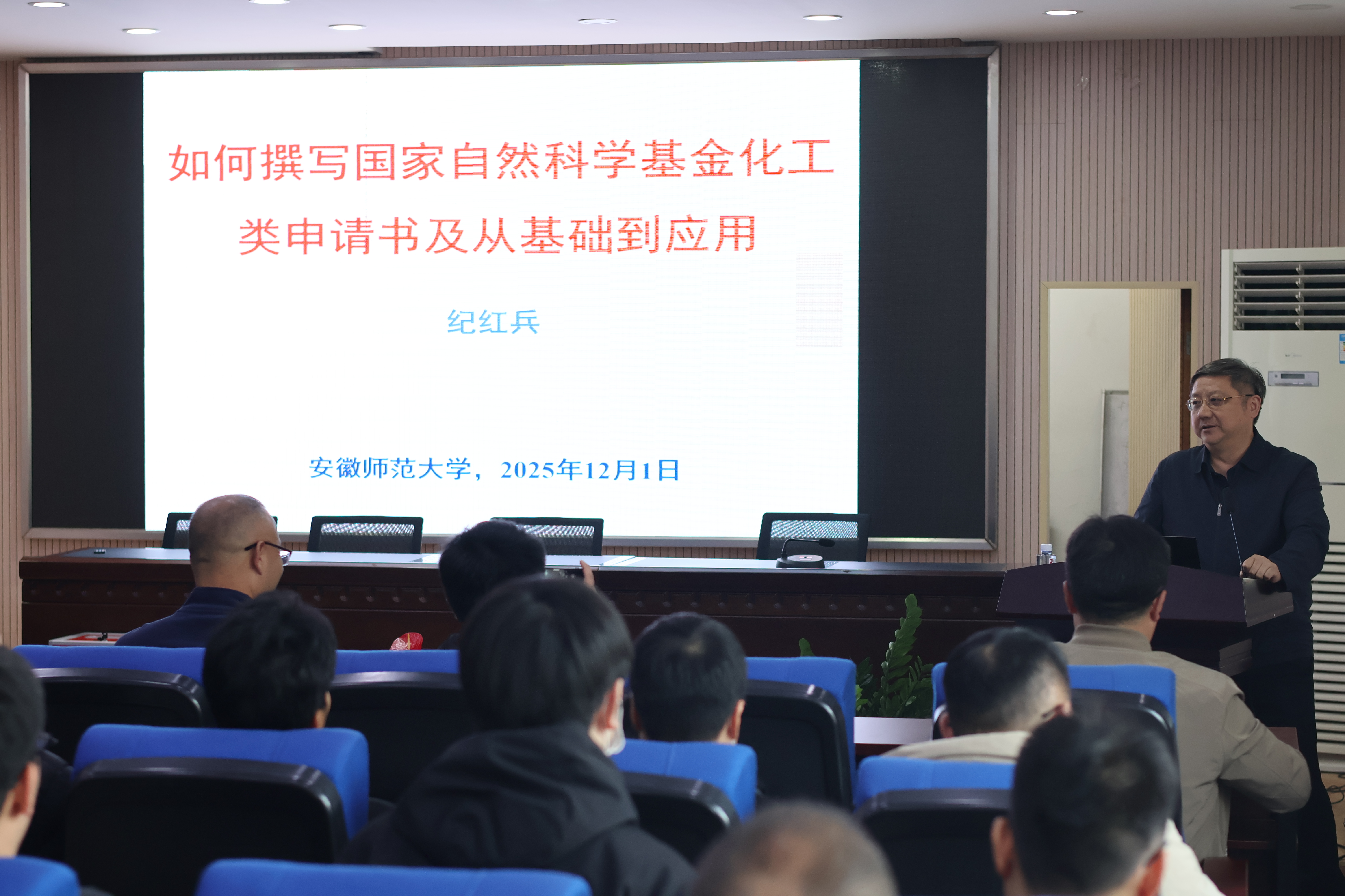 2025年12月1日,浙江工业大学纪红兵教授应邀来我校讲学。报告会在花津校区学苑南楼6号楼216室举行,由化材学院庄桂林院长主持,化材学院部分师生参加了此次报告会。