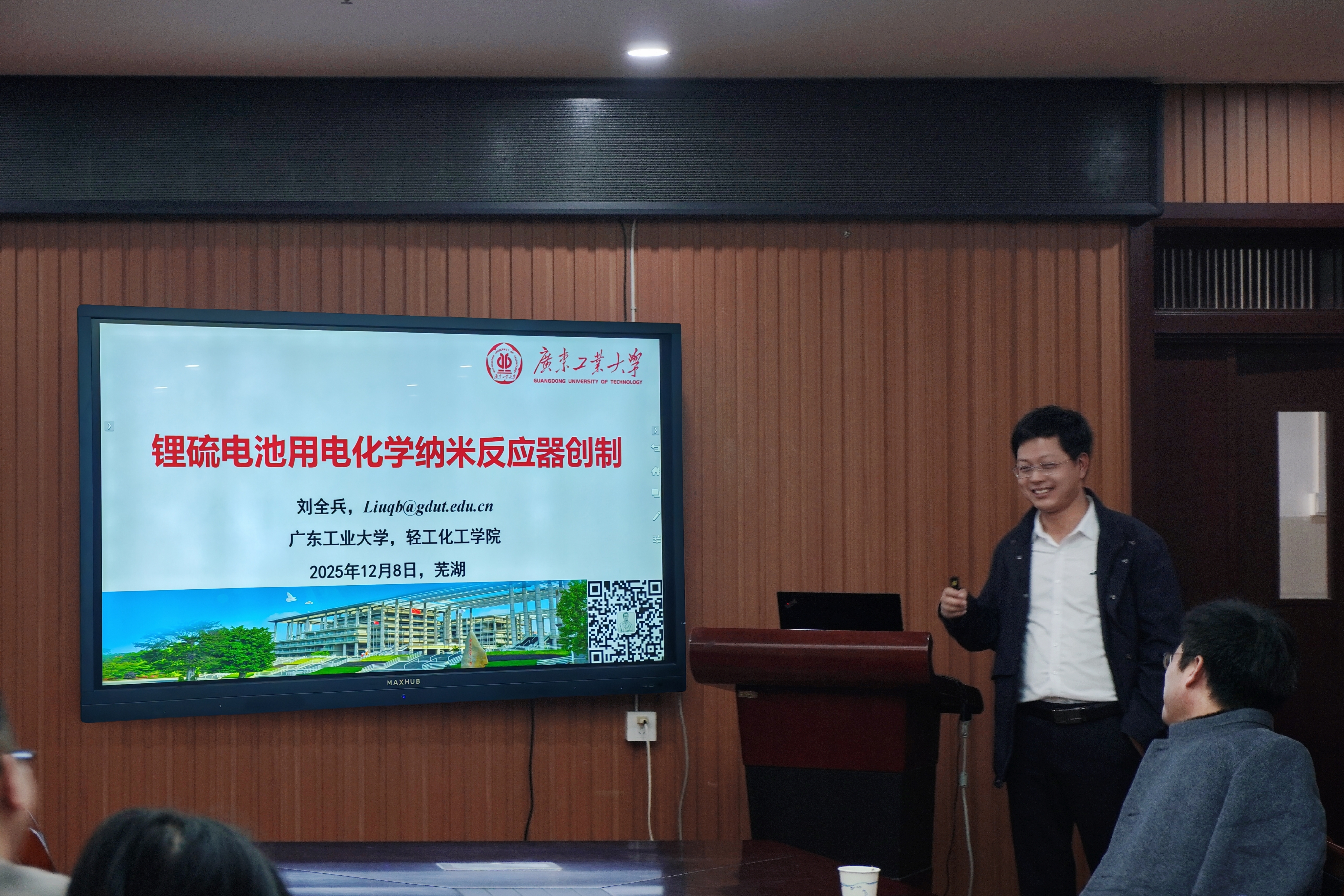 2025年12月8日,广东工业大学刘全兵教授应邀来我校讲学。报告会在花津校区礼勤楼702会议室举行,由校科协副主席耿保友教授主持,化材学院部分师生参加了此次报告会。