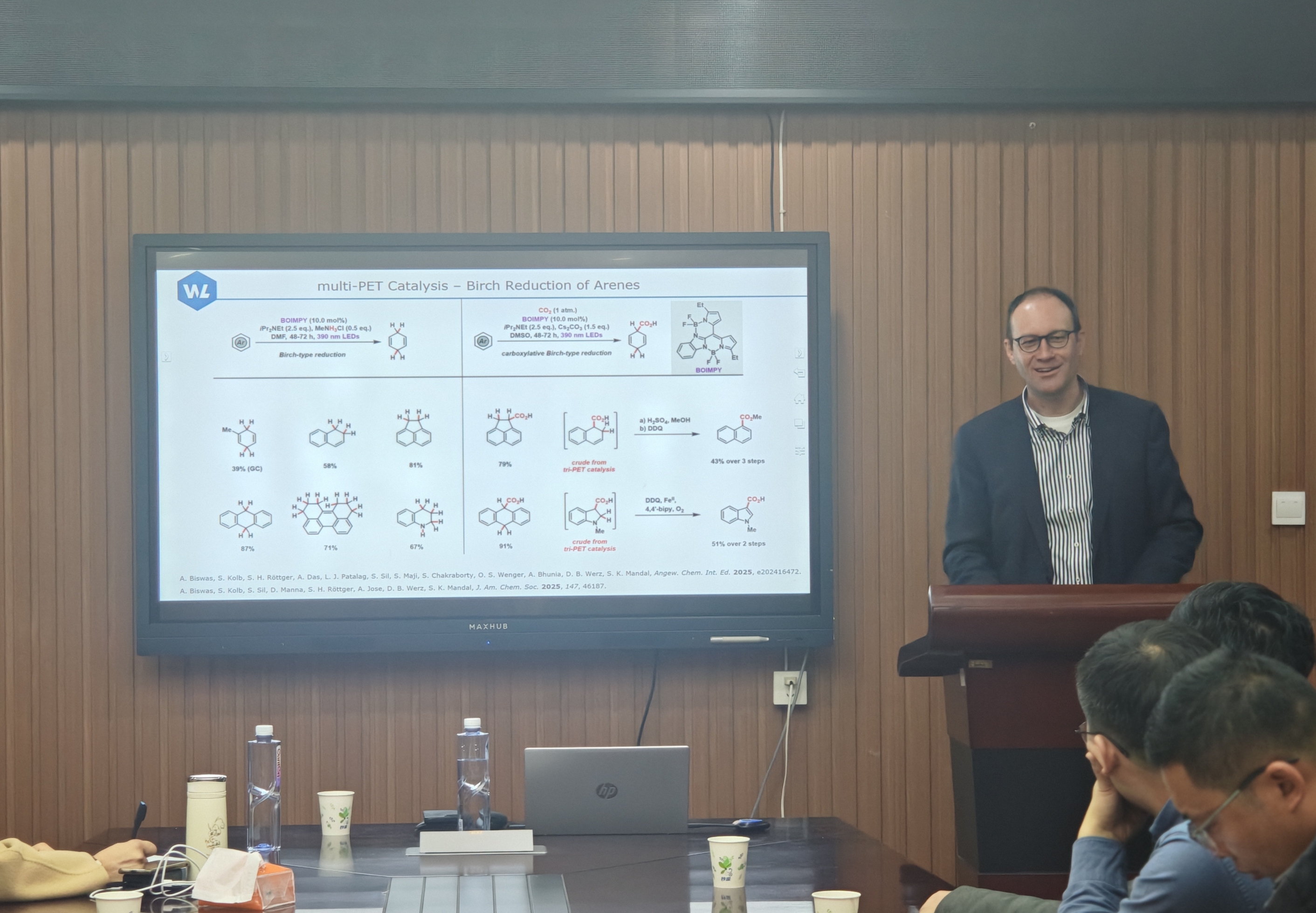2026年1月12日,德国弗菜堡大学Daniel Werz教授应邀来我校讲学。报告会在花津校区礼勤楼702会议室举行,由化材学院陈郑副院长主持,学院部分师生参加了此次报告会。
