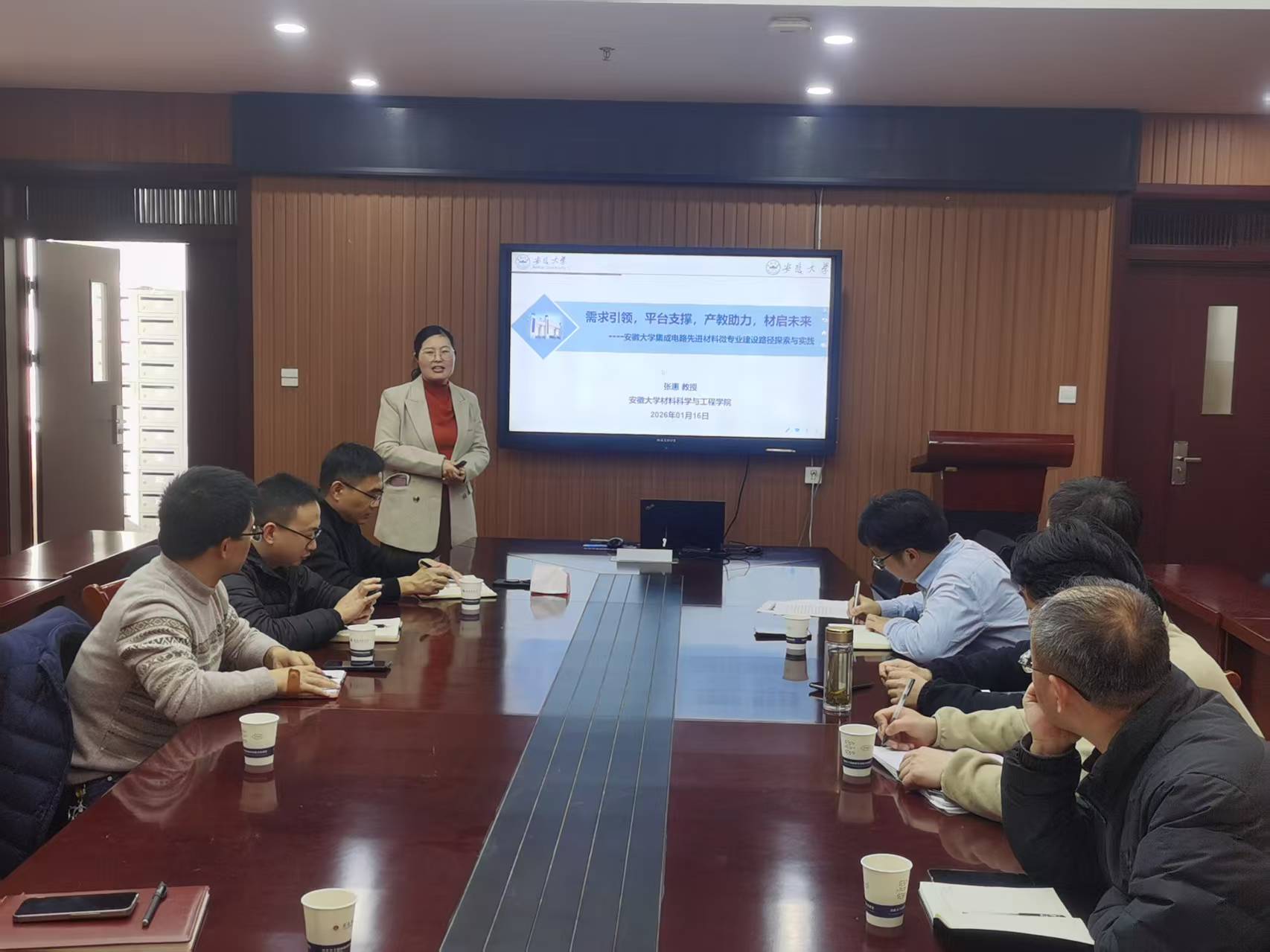 2026年1月16日下午,安徽大学张慧教授应邀来我校作专业建设报告。报告会在花津校区礼勤楼702室举行,由化材学院院长庄桂林教授主持,化材学院教学副院长、督导组老师、各系主任、课程群负责人等参加了此次报告会。