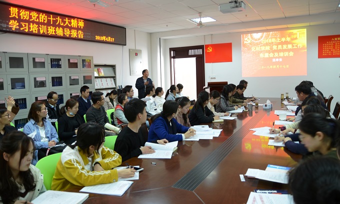 4月17日下午,化材学院党员学习贯彻党的十九大精神培训班开班仪式在学院党员活动室举行。学院党委委员、党支部书记、党支部委员及部分党员代表参加了会议。