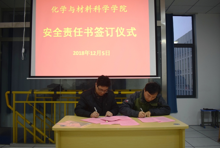 12月5日下午,学院召开安全生产工作专题会议,全院教职工参会。院党委书记汪俊武带领大家学习了《新时代高校教师职业行为十项准则》《教育部关于高校教师师德失范行为处理的指导意见》《教育部办公厅关于切实做好岁末年初学校安全生产工作的通知》,传达了学校“安全生产工作会议”精神。他强调指出:1、要高度重视,把安全管理放在实验室各项工作的首要位置; 2、要加强制度建设,健全实验室的安全管理制度和实施细则,做到规章制度上墙,安全责任在心;3、要明确责任,将安全管理责任层层分解、落实到人;4、要加强宣传教育,使师生真正掌握安全知识,切实增强安全意识,养成主动防范安全事故的习惯,掌握安全防范的技能,切实预防安全事故的发生。学院各分管领导分别就学期末的各项安全工作进行了布置和要求。 高峰院长代表学院分别和本科实验室、科研实验室、药品仓库保管、图书资料以及学生安全稳定工作的负责老师签订安全责任书,做到安全责任层层落实、细化到人、细化到岗,进一步强化了安全责任。 据悉,化材学院一直将实验室安全作为日常工作的重点,安全工作常抓不懈。一是组织实验室安全日常检查,根据学院安全检查制度,要求各实验室负责人定期进行安全卫生自查和互查,同时进行院检查组集中检查的三位一体检查制度。从实验室仪器设备使用安全、实验室危险化学品管理使用安全、实验室电器及消防安全、实验室特种设备管理使用等多方面进行检查;二是建立实验室安全知识学习教育体系,实行实验室进入考核制度,本科生和硕士研究生新生只有通过实验室安全知识学习和考核合格后方能进入实验室开展工作,同时明确研究生导师为研究生安全责任第一责任人,要求导师定期进行安全教育;三是层层落实安全责任制,学院与各类人员签订安全责任书,将安全责任落实到每个教职工,进一步强化责任意识,做到安全责任人人有责。