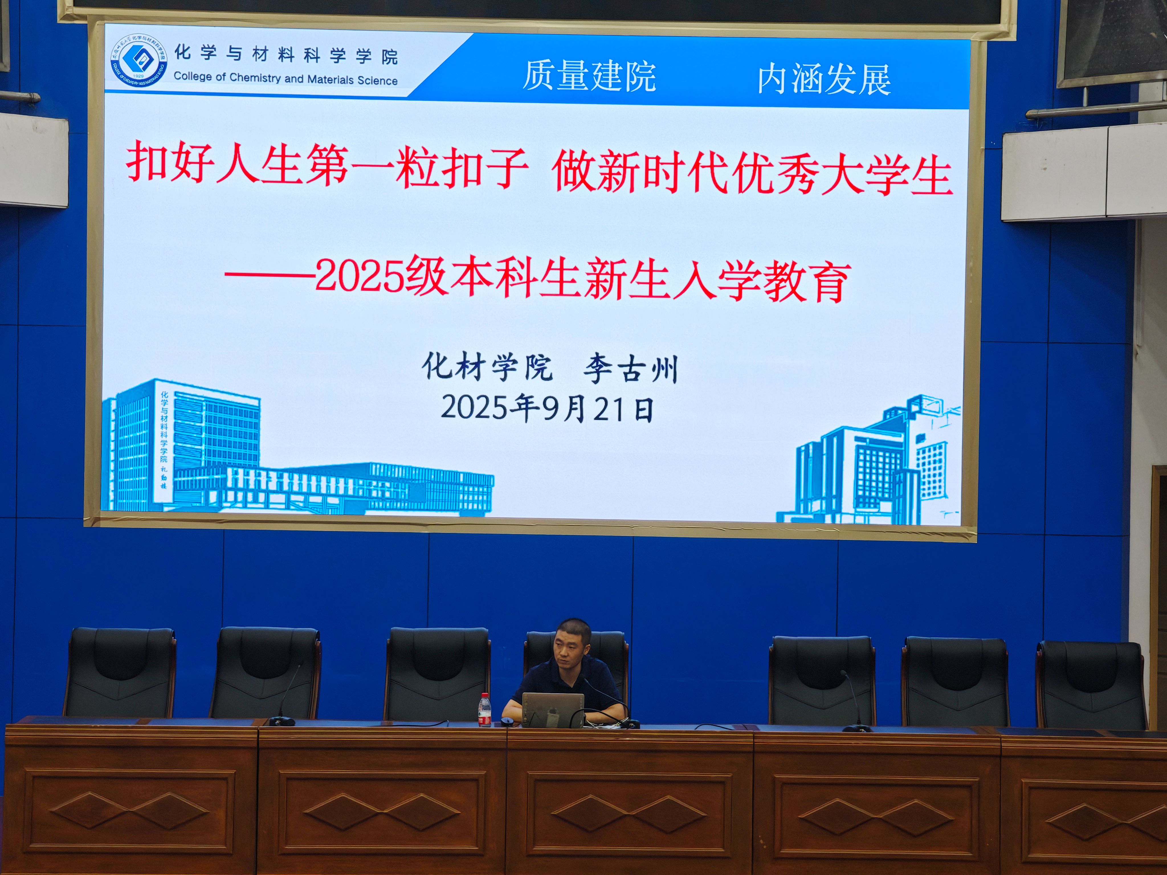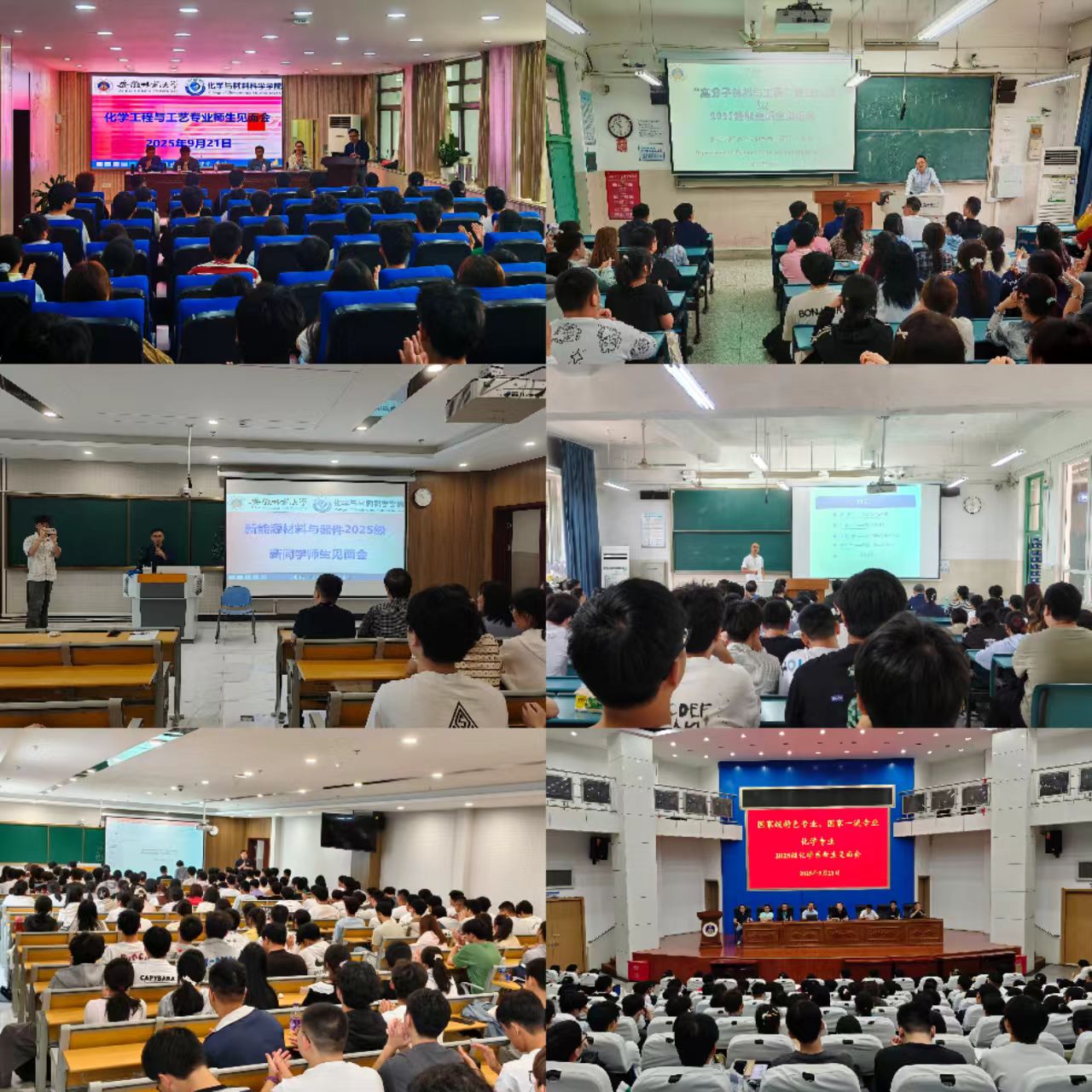 本网讯(化材学院)为加强2025级新生入学教育,帮助其尽快适应大学学习与生活,明确未来发展目标,化材学院于9月21日至27日分专业组织开展了2025级新生入学教育、入党启蒙教育、专业师生见面会等系列活动。学院党委书记梁齐军、党委副书记李古州,副院长周映华、陈郑,各系系主任、新生辅导员及全体2025级本科生分别参加了相关活动。