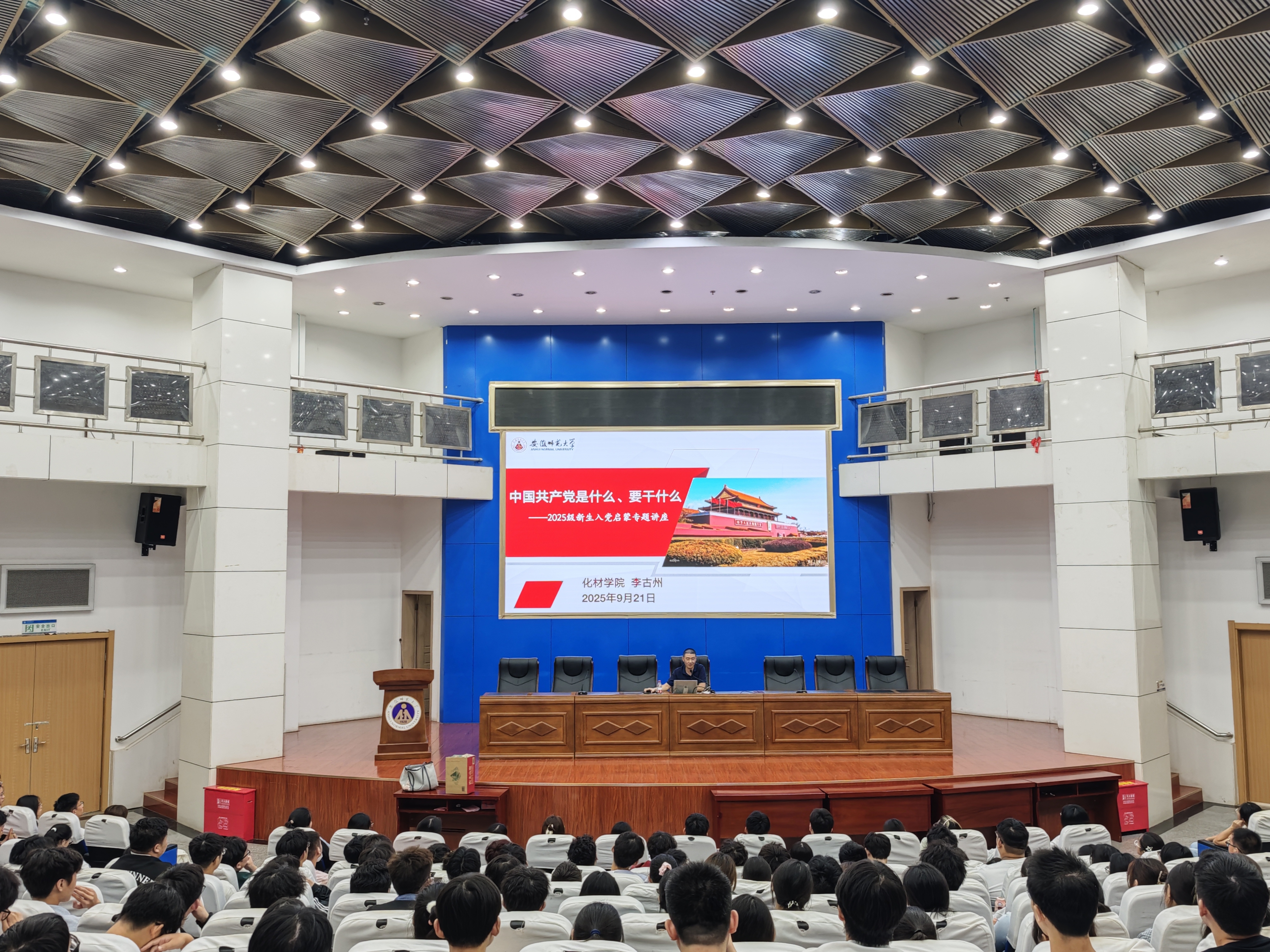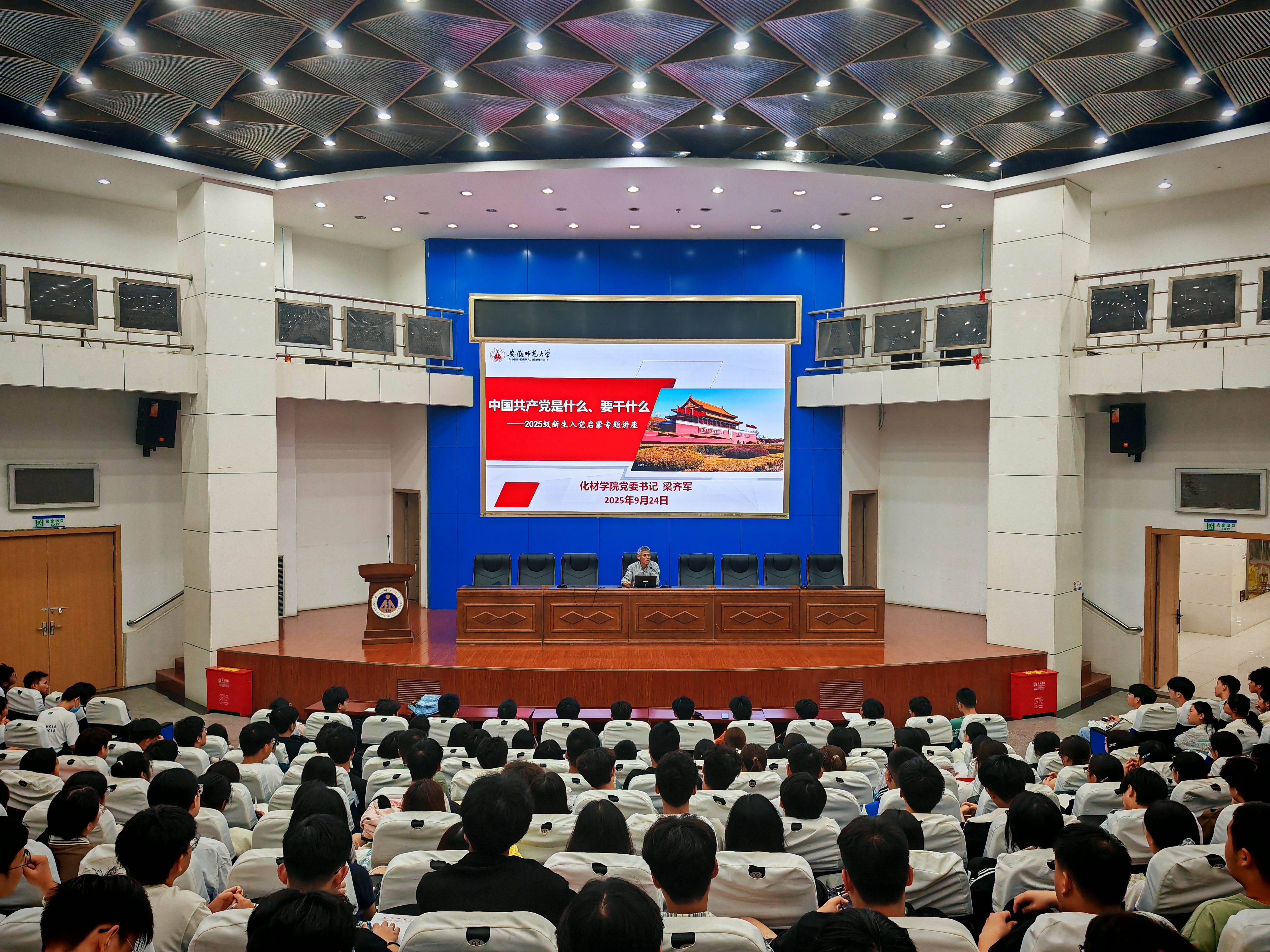 在入党启蒙教育阶段,梁齐军和李古州分别为同学们作了题为《中国共产党是什么、要干什么》的入党启蒙专题讲座,他们从“中国共产党是什么、中国共产党要干什么、当代青年该怎么做以及如何申请加入中国共产党”四个部分展开讲解,系统阐述了党的光辉历程、先进典型事迹、入党条件以及入党申请书的撰写要求,结合党史重要节点和优秀党员事例,生动诠释了党的初心与使命。梁齐军强调,新生应在入学之初深刻理解中国共产党的性质与宗旨,这是向党组织靠拢的思想基础。他鼓励大家将个人专业成长与国家发展需要紧密结合,以党员标准严格要求自我,努力成为“政治过硬、专业拔尖”的复合型人才。