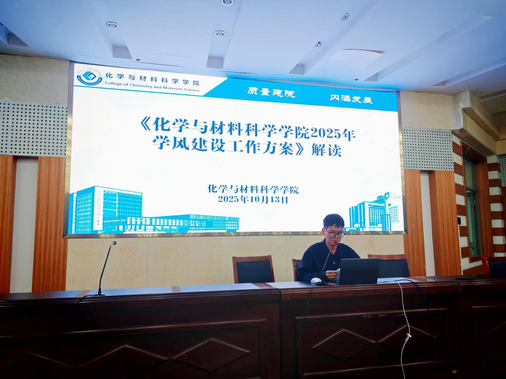专题部署定方向,明晰学风建设路径。10月13日晚,学院围绕学风建设召开专题部署会,学院团委副书记梁成面向低年级学生骨干传达学院2025-2026学年学风建设工作方案,重点解读方案目的、实施措施,在培养目标上,明确以“提升学业质量、培育科研素养、严守考试诚信”为核心,助力学生扎实专业基础;在实施路径上,提出搭建“班级-寝室-个人”三级学习促进体系,通过组建学业帮扶小组、开展期中、期末考试分析会等方式,激发学生学习主动性。他指出,学风建设实施方案的落地,不仅能营造“比学赶帮超”的学习氛围,更将成为提升学院办学质量与人才培养成效的核心支撑。