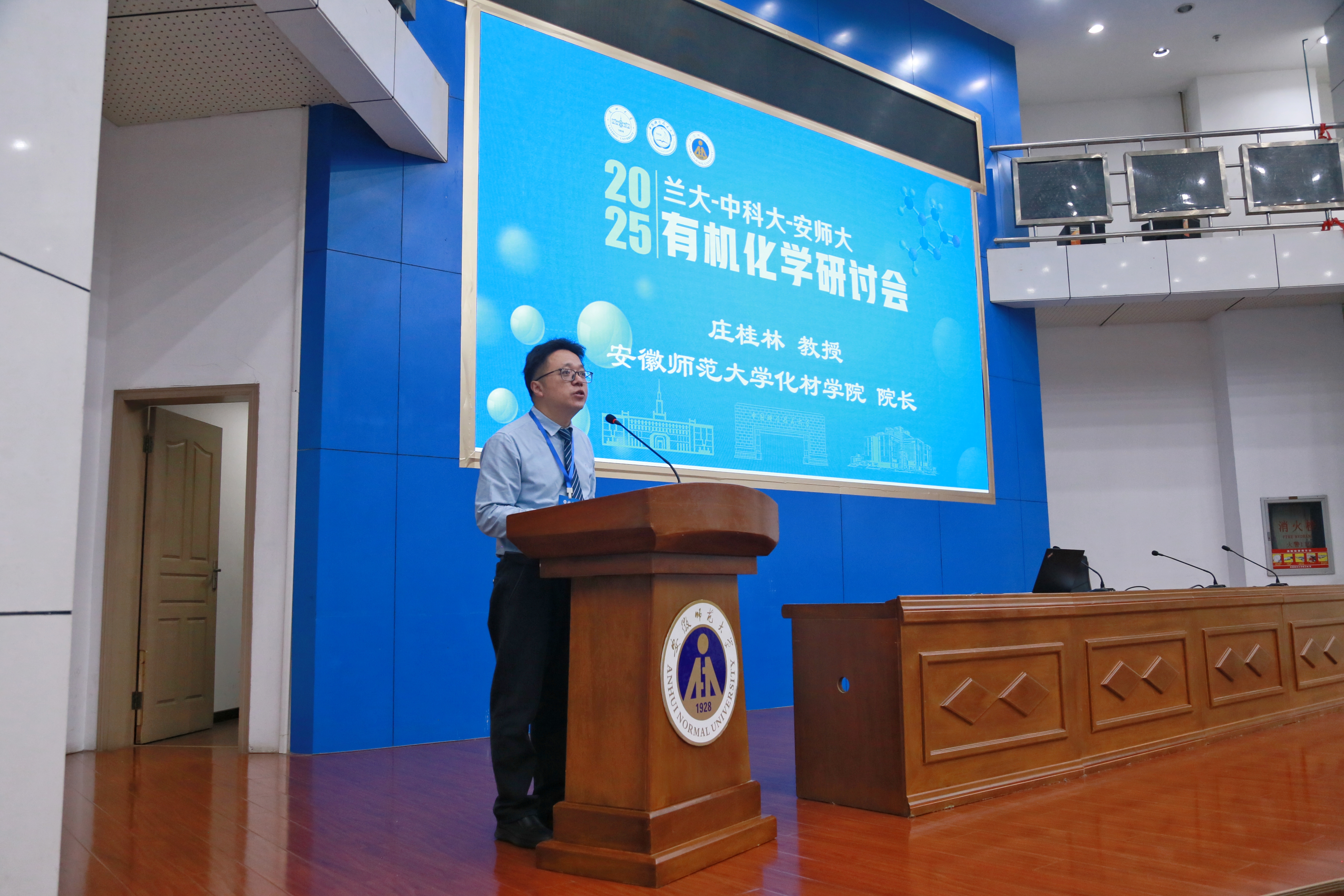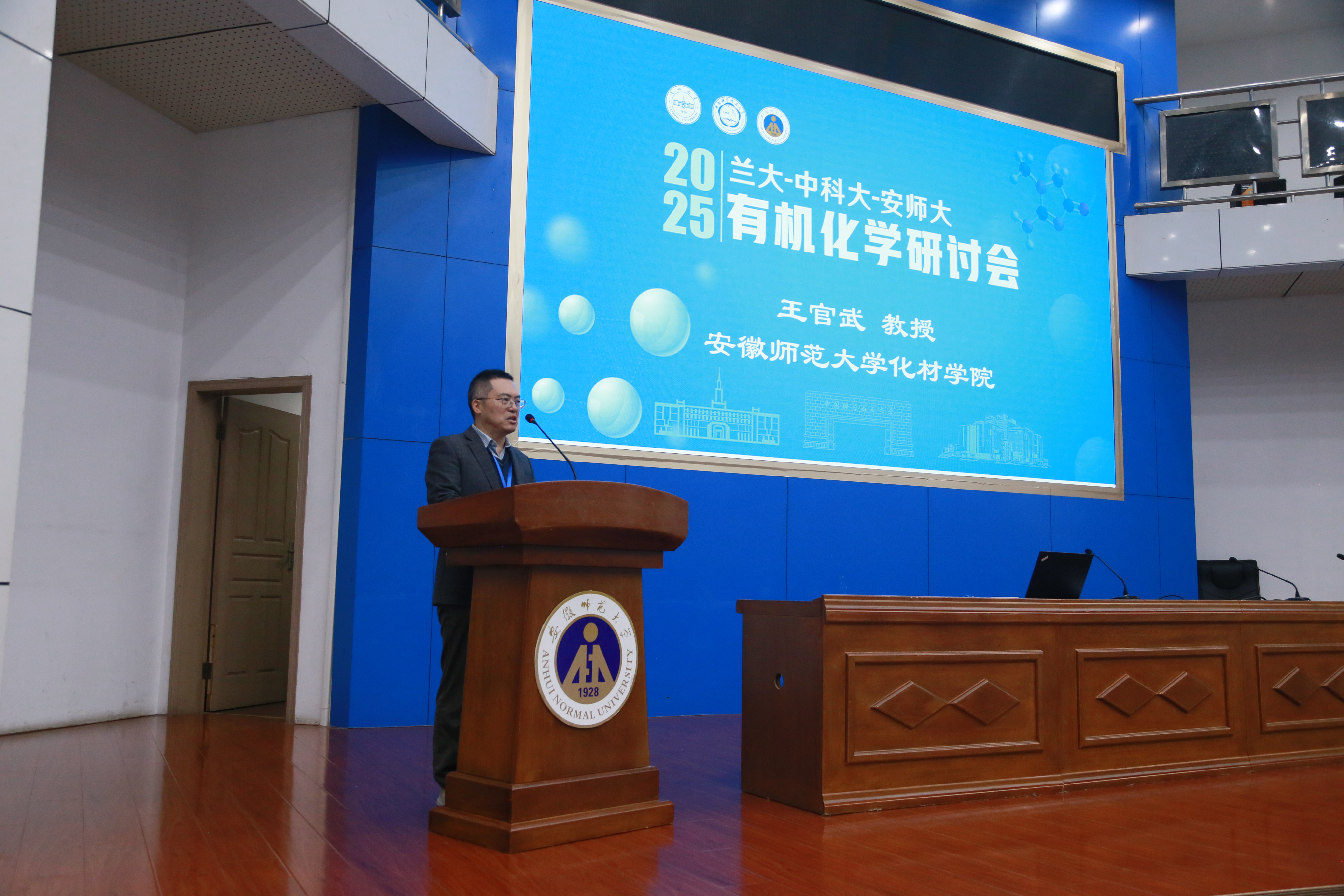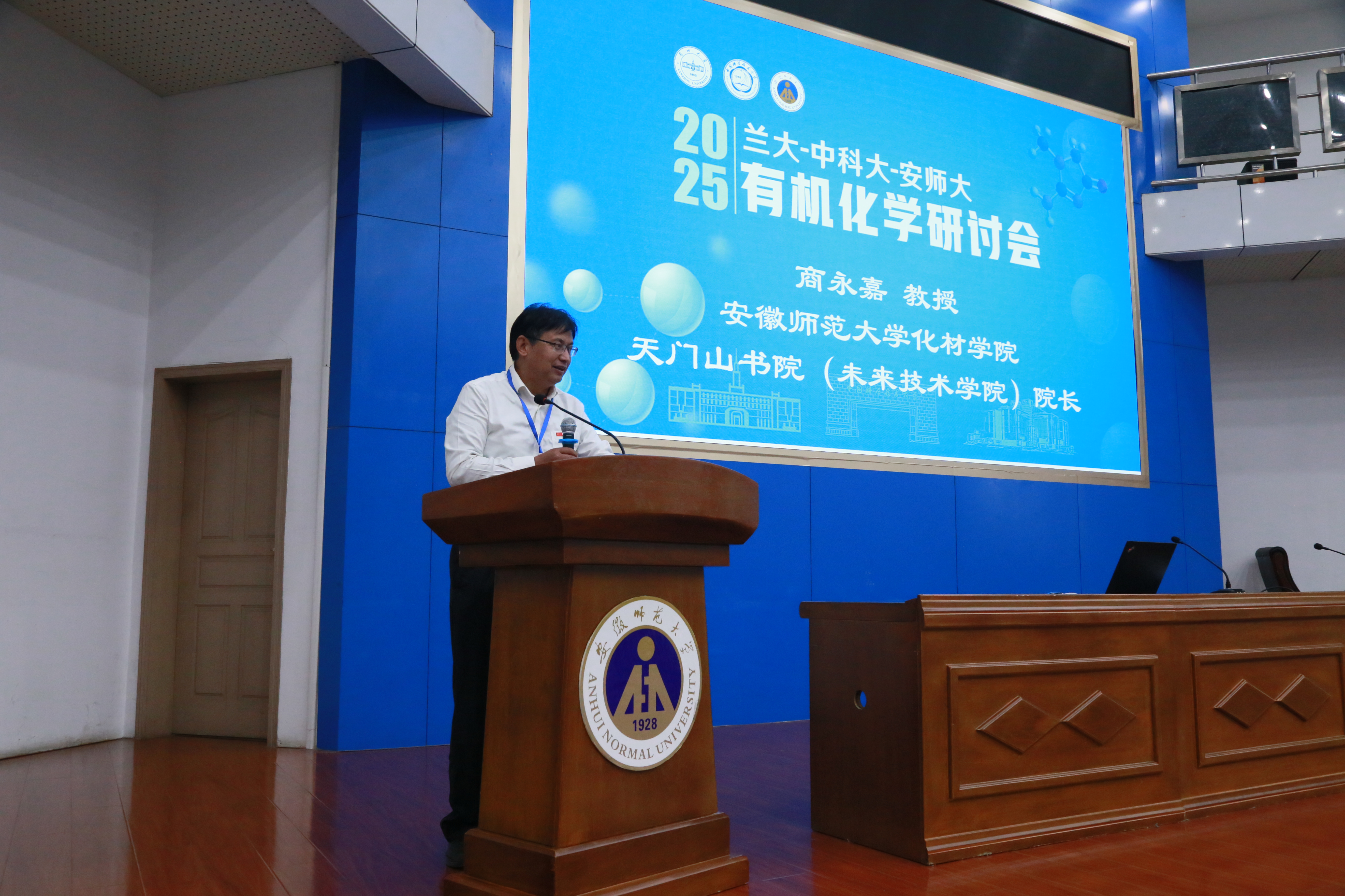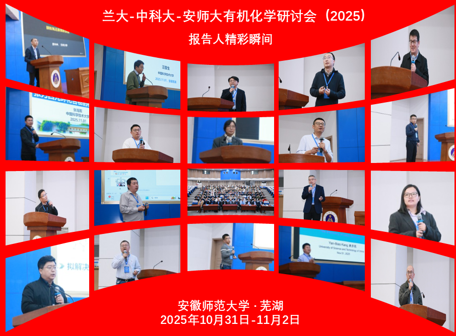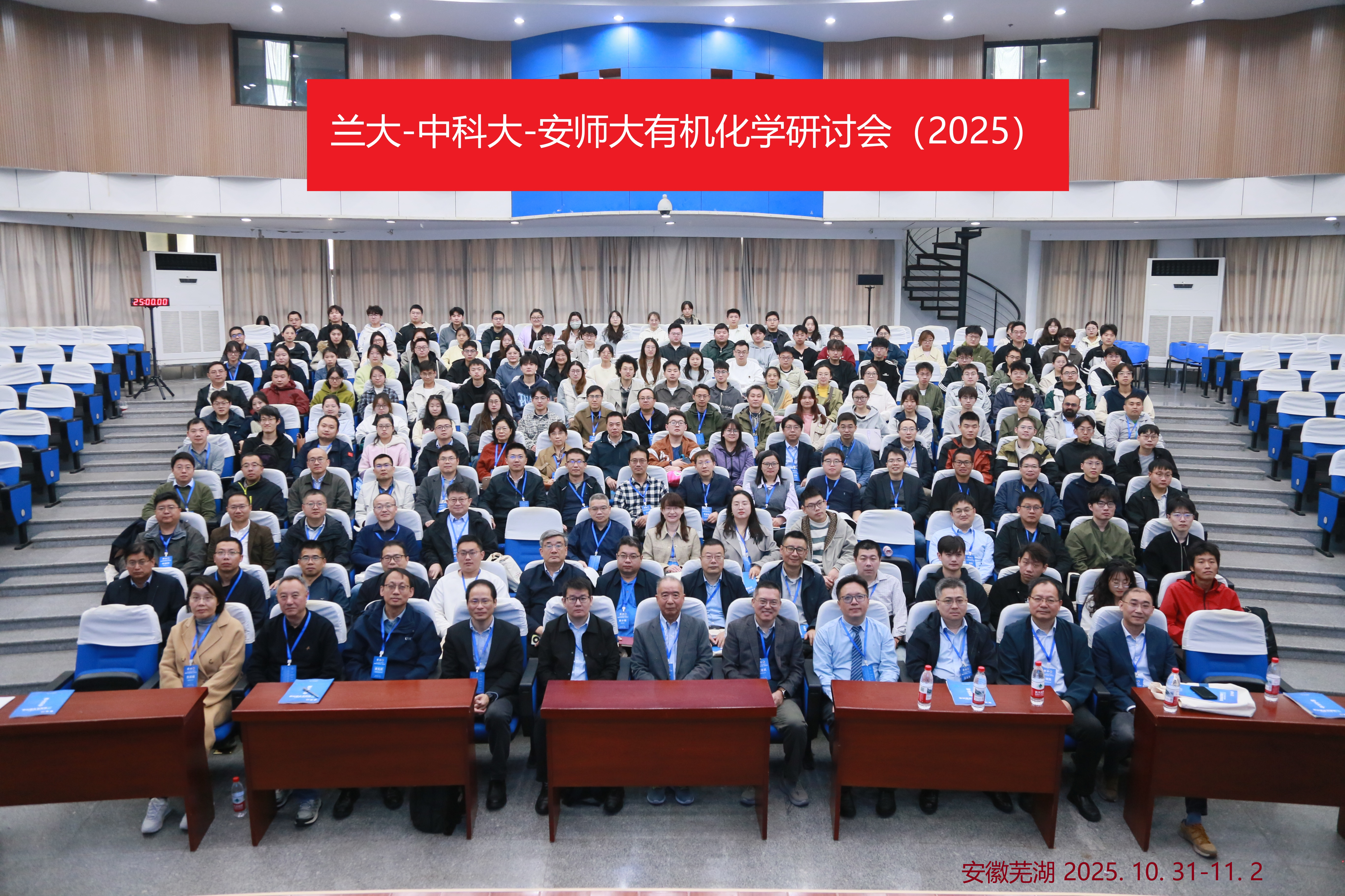 2025年10月31日至11月2日,由安徽师范大学主办,兰州大学和中国科学技术大学参与的“兰大-中科大-安师大有机化学研讨会(2025)”在安徽师范大学花津校区敬文报告厅成功举办。本次研讨会汇聚了来自上述三所高校,以及中国科学院化学研究所、淮北师范大学等多所高校与科研机构的70余位杰出专家学者。与会代表中既有成就卓著的学科领军人物,也有活跃于科研一线的优秀青年学者,大家齐聚一堂,围绕有机化学前沿领域开展深入交流与研讨,分享最新科研进展。化学与材料科学学院部分教师和研究生等200余人参加了本次研讨会。