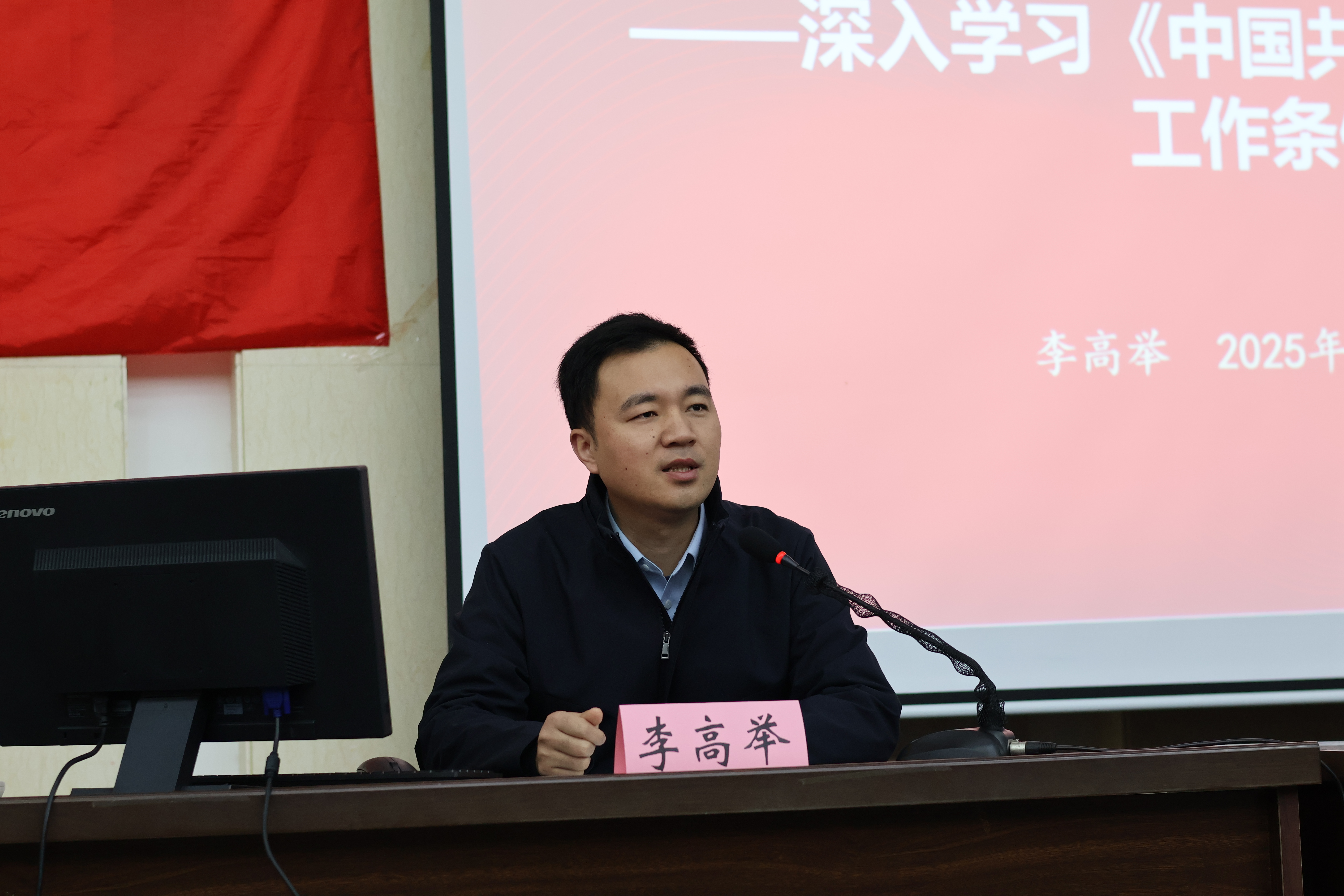 组织部副部长李高举围绕《中国共产党党员教育管理工作条例》(以下简称《条例》),从历史维度传承管党治党经验、现在维度破解党员管理难题、未来维度夯实执政根基三个层面,对《条例》进行全面解读。他指出,《条例》是新时代加强党员教育管理工作的基本遵循,对于提高党员队伍建设质量、保持党员先进性和纯洁性具有重要意义。他要求全体学生党员以《条例》为行为标尺,强化理论武装、严守组织生活、主动担当作为,在日常学习实践中锤炼党性,永葆党员队伍的先进性和纯洁性。