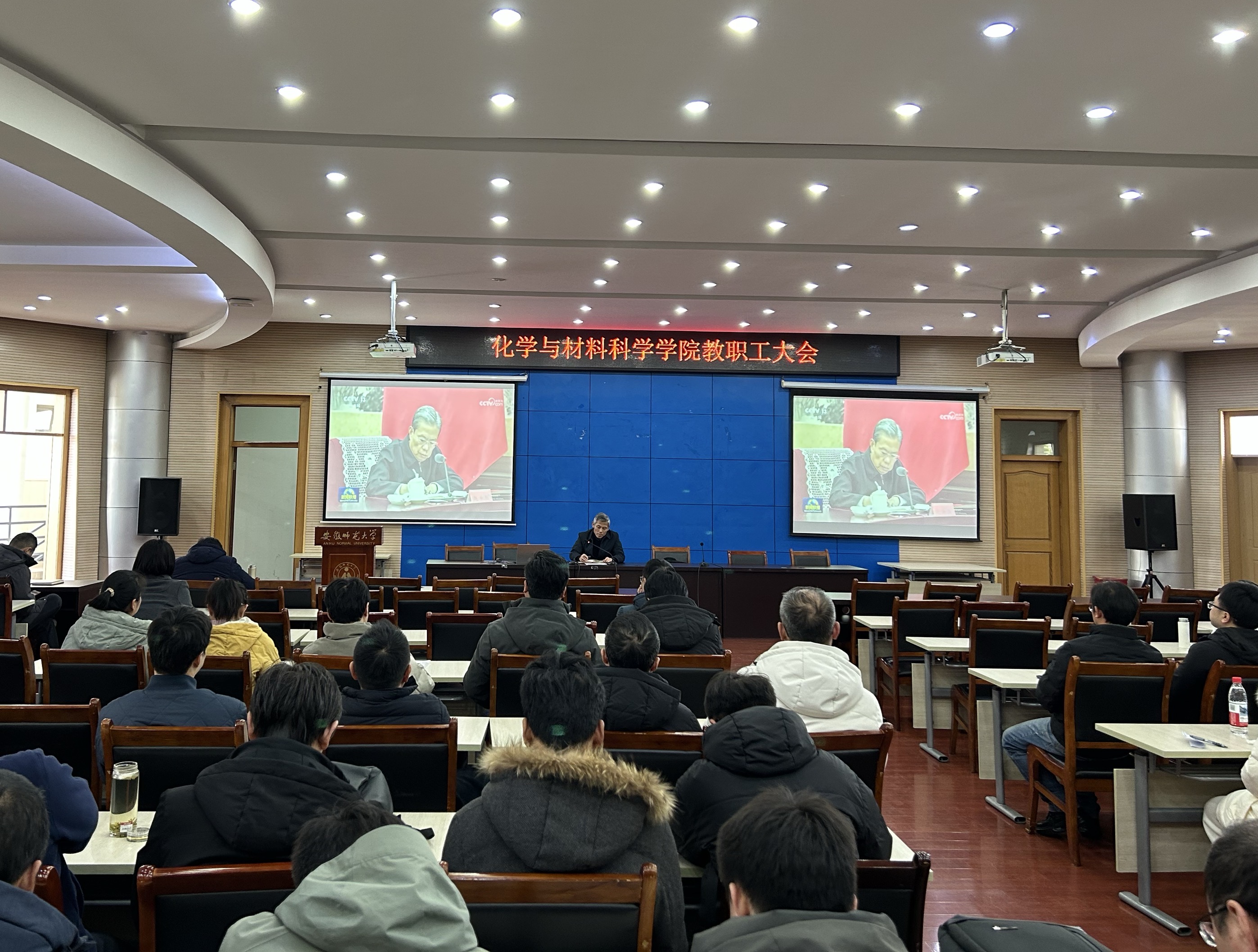 为深入学习贯彻党的二十届四中全会精神,进一步统一思想、凝聚共识,部署推进学院各项重点工作,1月7日下午,化材学院在花津校区会议中心第三报告厅召开教职工大会,会议由院党委书记梁齐军主持。