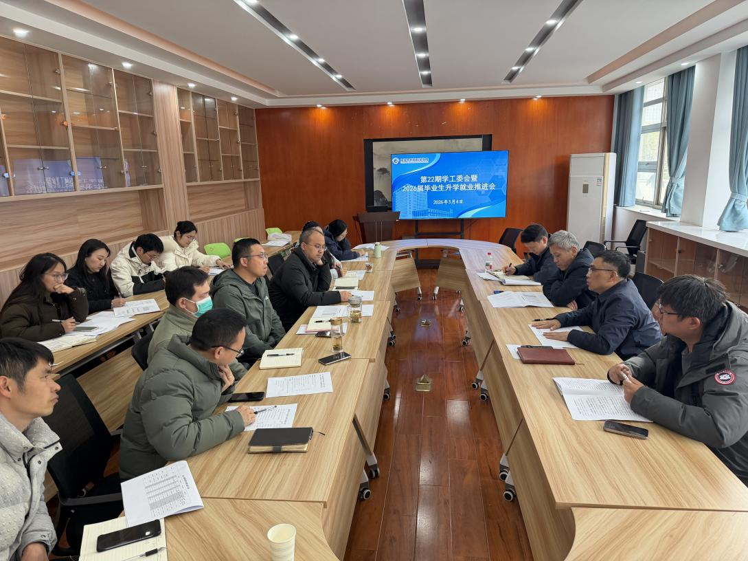 会上,芮先红首先传达学校《关于做好2026届本科毕业生就业工作的通知》精神,解读就业工作主体责任、资源拓展等核心要求,明确“一志愿应上尽上、调剂时能调尽调”的工作目标,划定升学就业工作开展方向。随后,毕业班辅导员逐一汇报各专业毕业生考研初试、升学意向及就业进展,结合上线数据剖析各专业升学就业特点与难点,为学院精准施策提供学情支撑。
