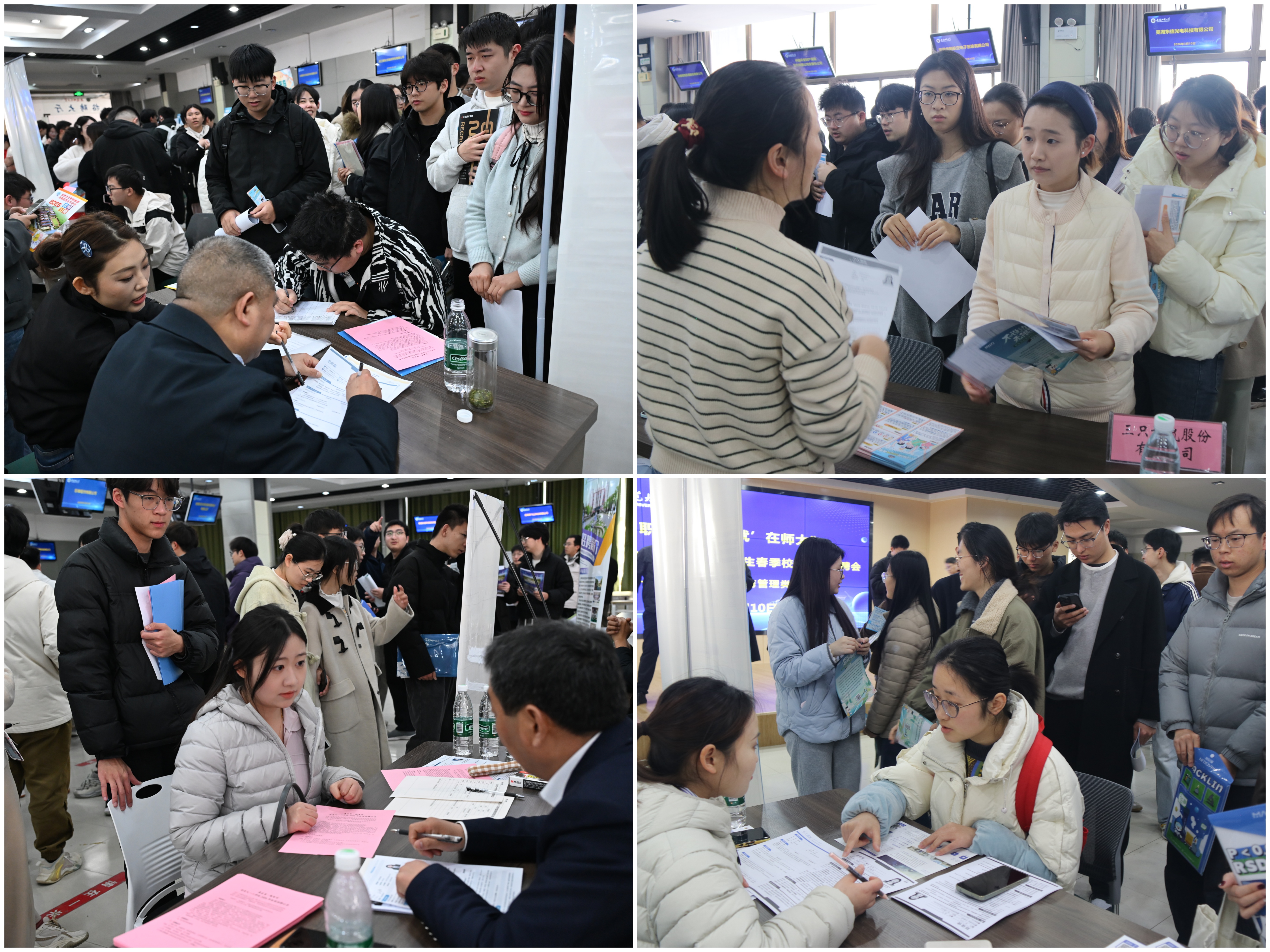 毕业班辅导员全程驻守招聘现场,主动靠前提供服务,悉心指导毕业生优化个人简历、精准匹配岗位,耐心解答求职过程中的各类疑问。参会毕业生踊跃参与,主动与用人单位沟通交流,现场洽谈氛围热烈、秩序井然。招聘会还特设就业咨询专区,为同学们提供职业规划、就业政策解读等一站式服务,切实提升就业帮扶实效。