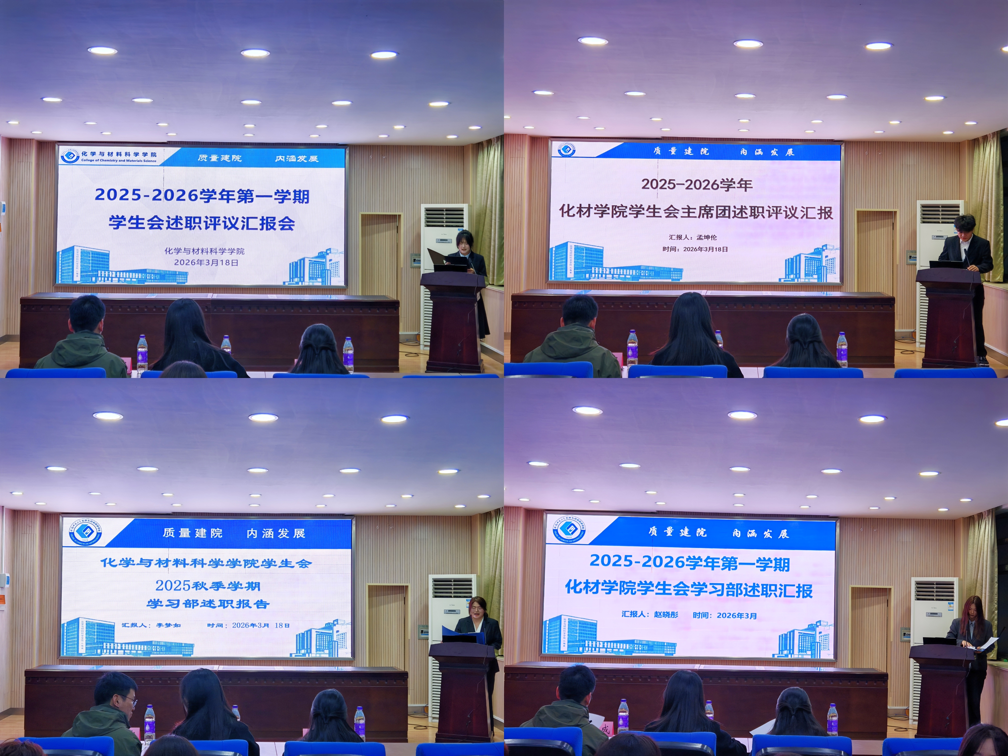 此次述职评议汇报会,不仅全面梳理了化材学院学生会上学期的工作脉络,更为学生会成员搭建了交流反思、互学共进的平台。全体学生会成员将以此次会议为契机,认真总结经验、深刻剖析不足,凝心聚力、笃行实干,以更饱满的热情、更扎实的作风投入到后续工作中,切实履行服务同学的宗旨,为学院学生工作高质量发展贡献青春力量。
