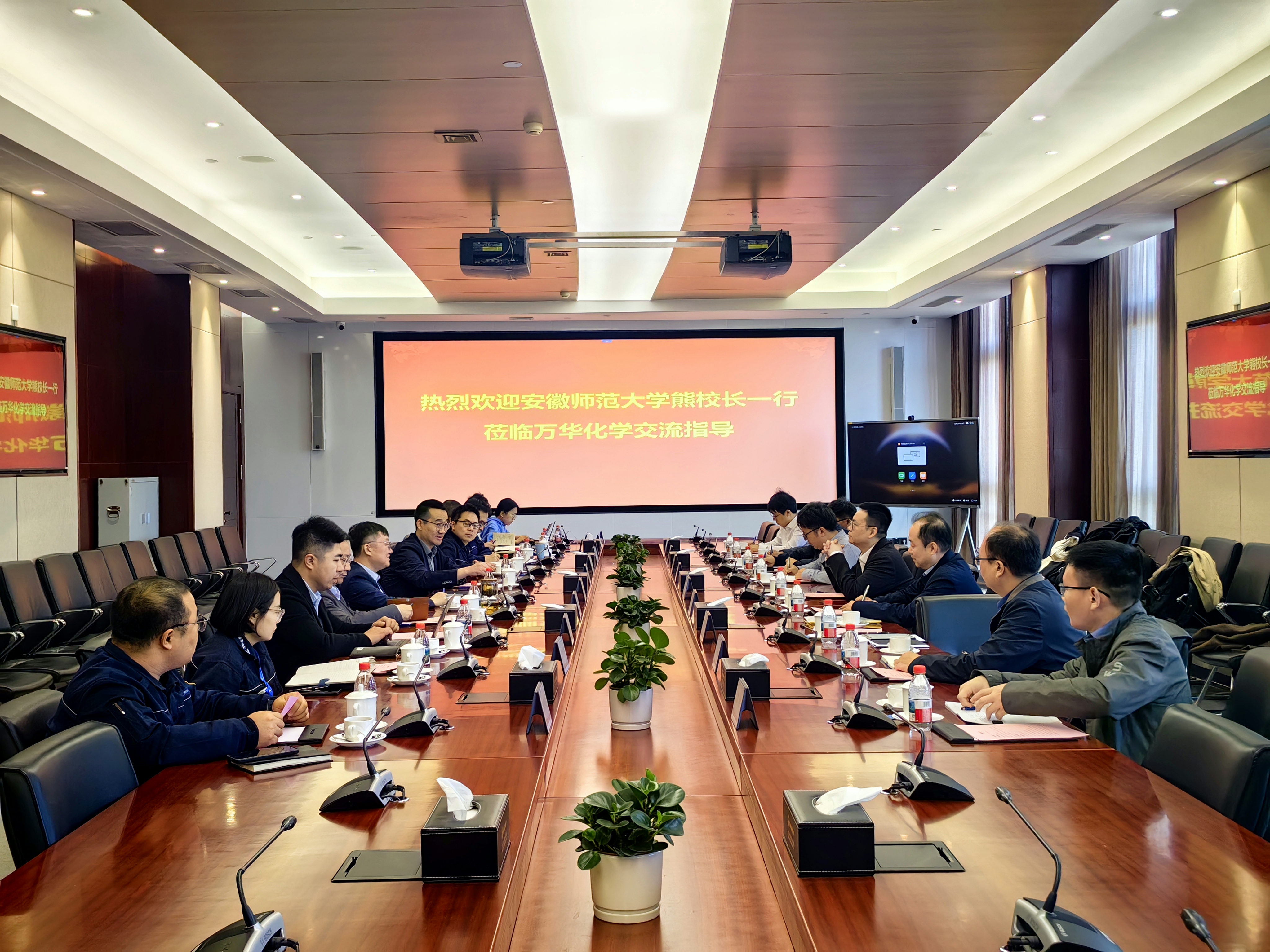 华卫琦对熊宇杰一行来到万华磁山全球研发中心开展合作交流表示热烈欢迎,并简要介绍了万华集团发展情况。他指出万华集团始终扎根新材料领域,围绕产业升级、既有产品新应用拓展、新兴领域布局三方面推进产学研协同创新。他希望万华的产业化平台、工业实践经验和市场需求洞察,与安师大的学术积淀、创新思维能形成有效优势互补,积极寻求技术瓶颈突破,推动实验室成果转化为产业发展的实际生产力。