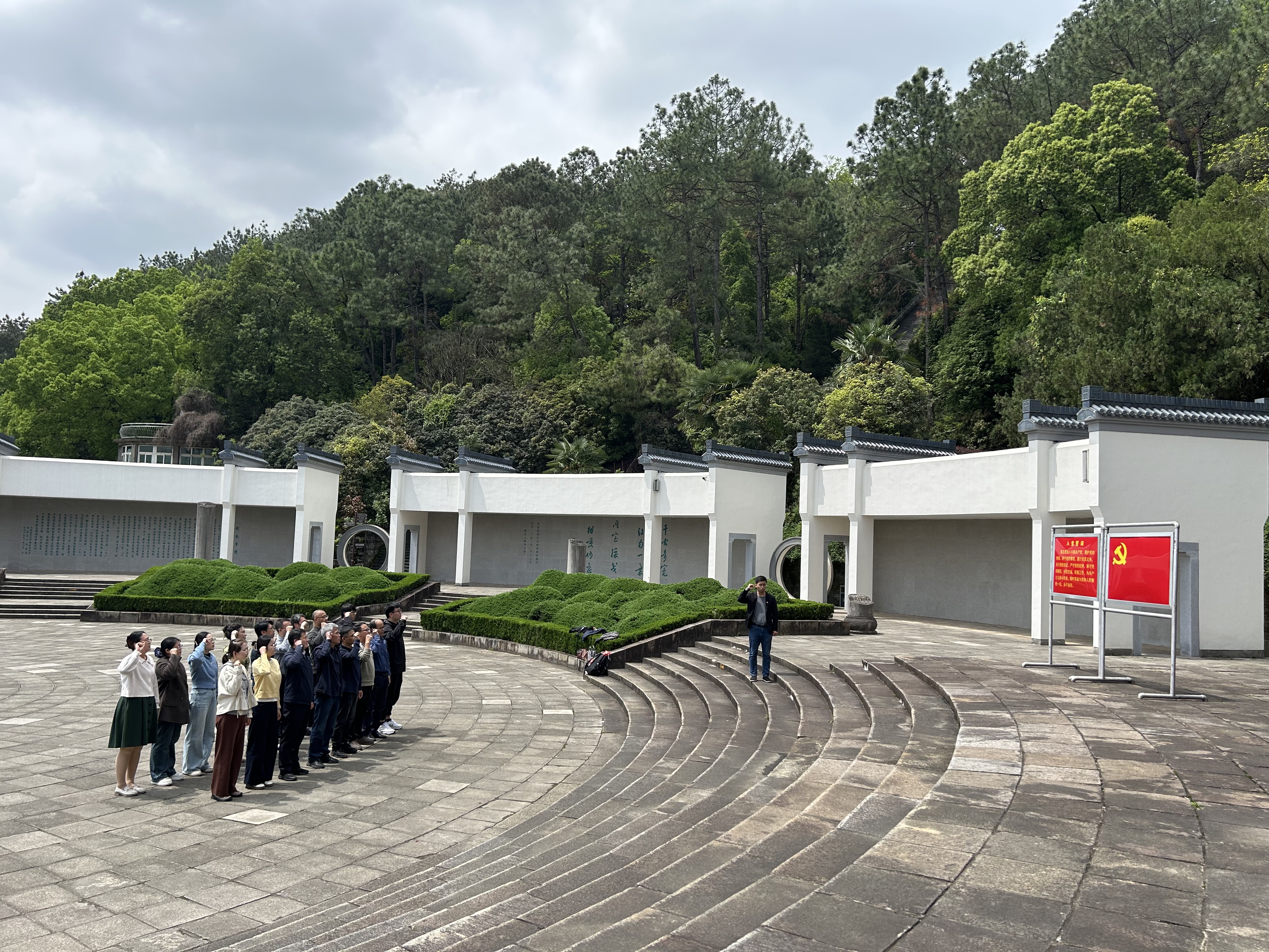 在烈士纪念广场,全体党员面向鲜红的党旗,举起右拳,庄严重温入党誓词。铿锵有力的誓词回荡在陵园上空,既是对革命先烈的深切缅怀,也是对初心使命的坚定坚守,进一步强化了全体教工党员的责任意识和担当精神。