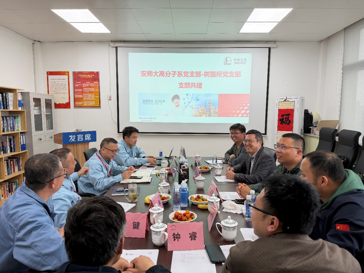 扬子石化科研开发中心合成树脂研究所党支部、科研开发首席专家李传峰、科研开发中心经理刁品云、合成树脂研究所所长杨柳、副所长景昆等企业负责人与支部党员参会,双方在科研开发中心树脂所 500 会议室举行座谈交流。