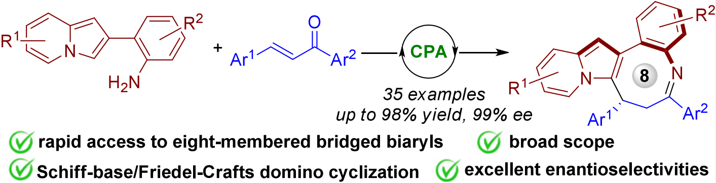 29)Yuanyuan Cheng, Xuecheng Shao, and Qijian Ni*. Organocatalytic Asymmetric [5 + 3] Domino Annulation: Direct Access to Enantioenriched Eight-Membered Bridged Dihydroazocino[4,5‑b]indolizines.Org. Lett. 2025, 27, 13061-13066.link